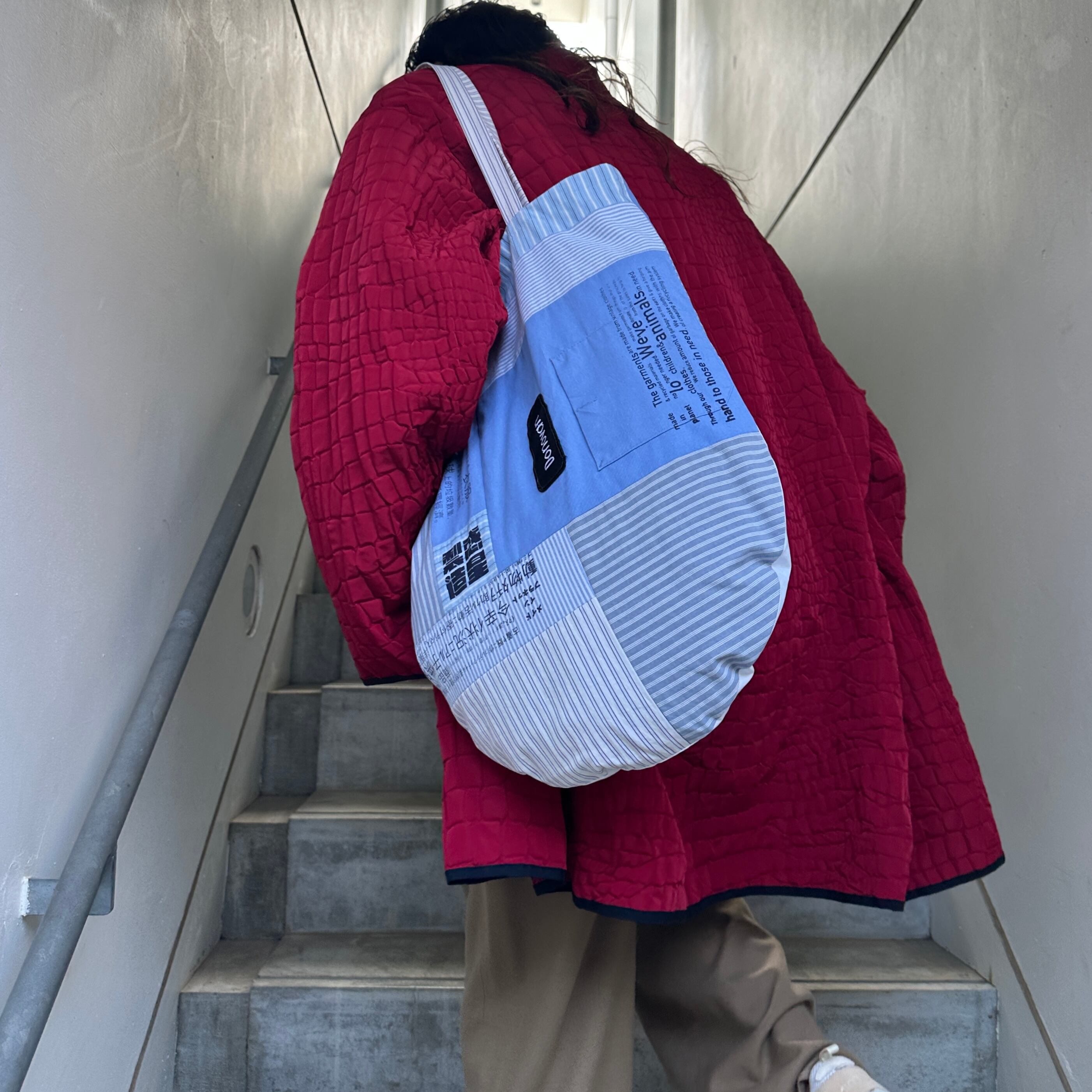 “This will be a patchwork tote bag made from unused parts of vintage shirts that made “MSGA hockey shirt” and “MSGA hockey shorts”.
