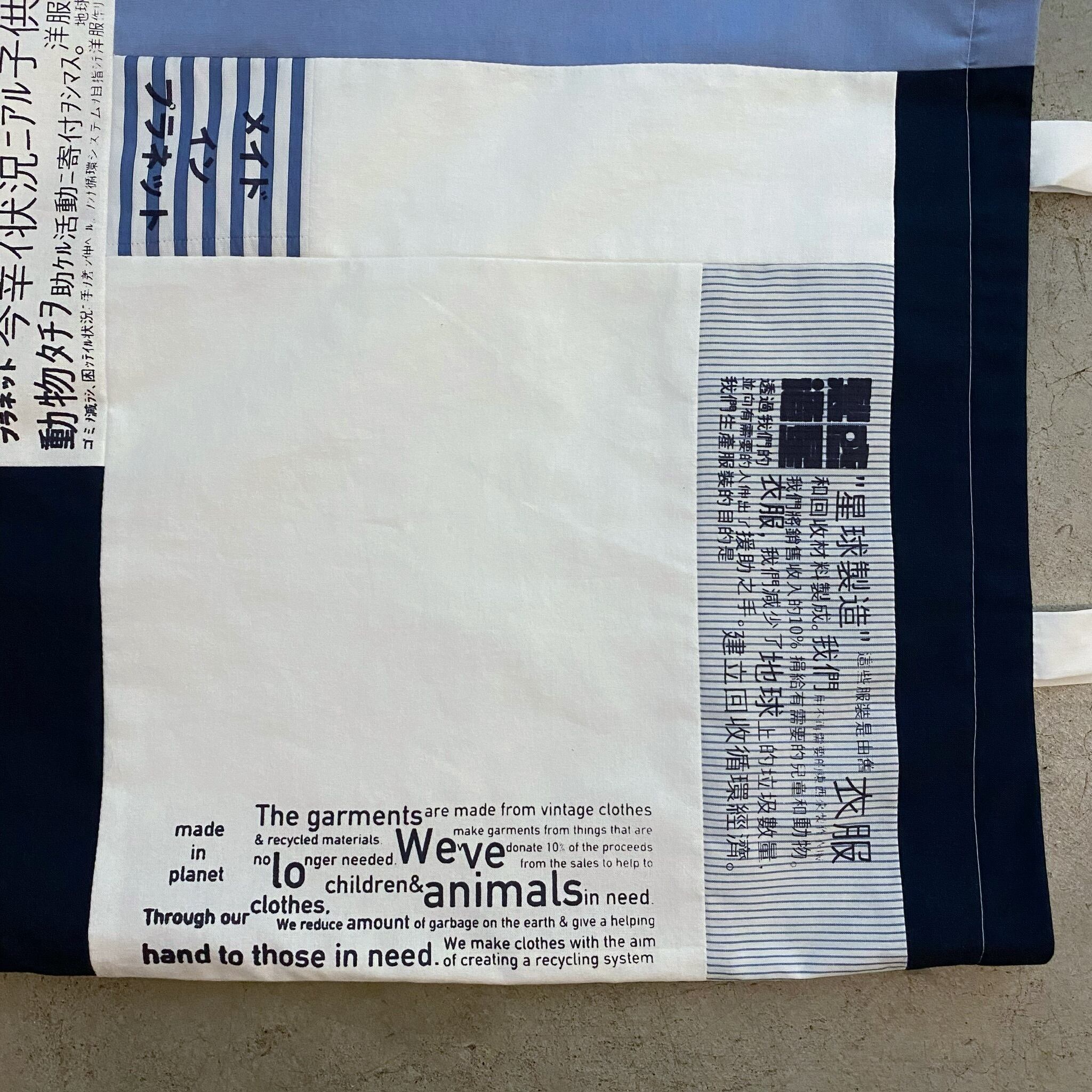 “This will be a patchwork tote bag made from unused parts of vintage shirts that made “MSGA hockey shirt” and “MSGA hockey shorts”.