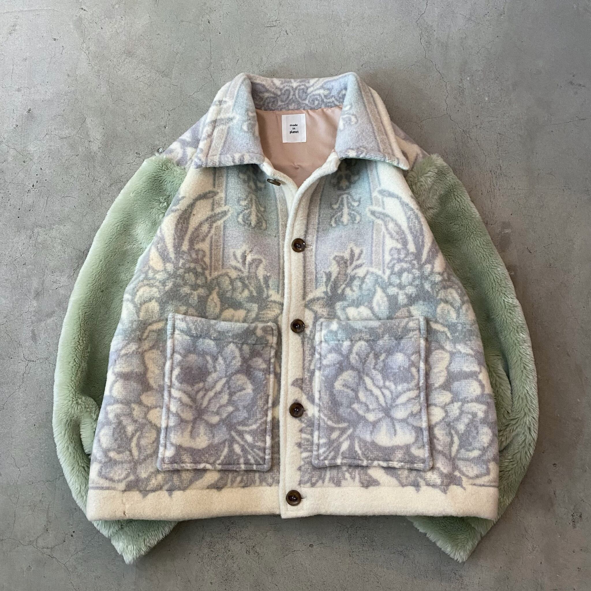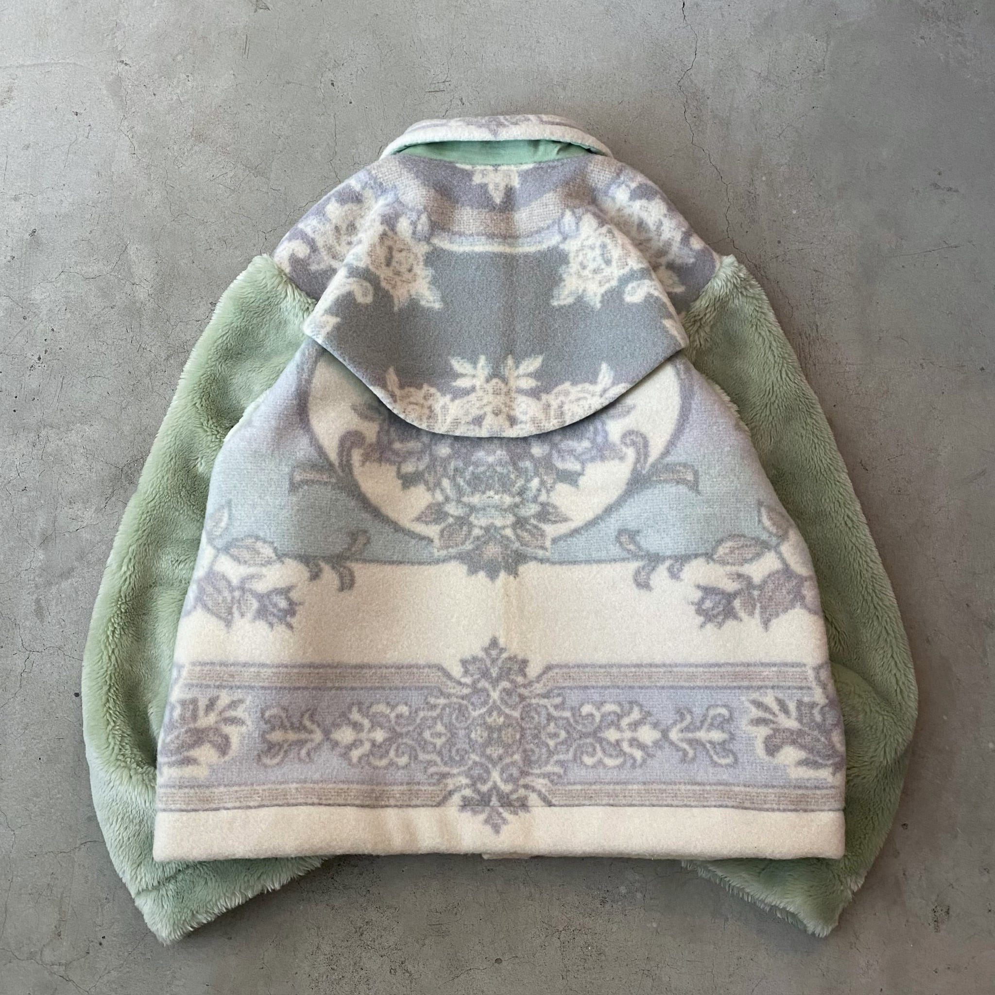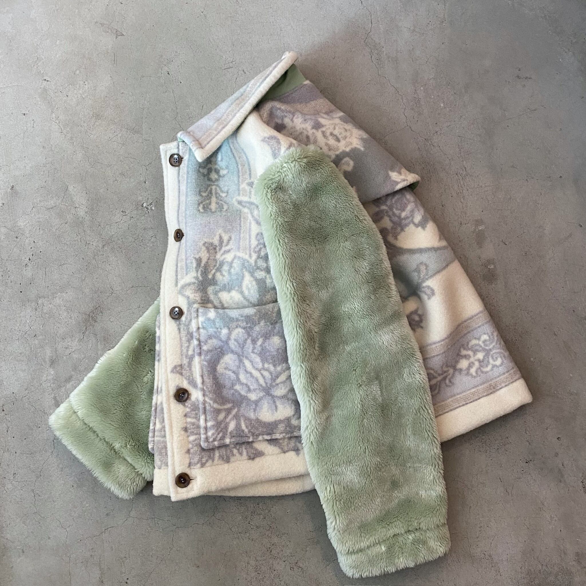 袖は毛足の長いヴィンテージ毛布になっています。