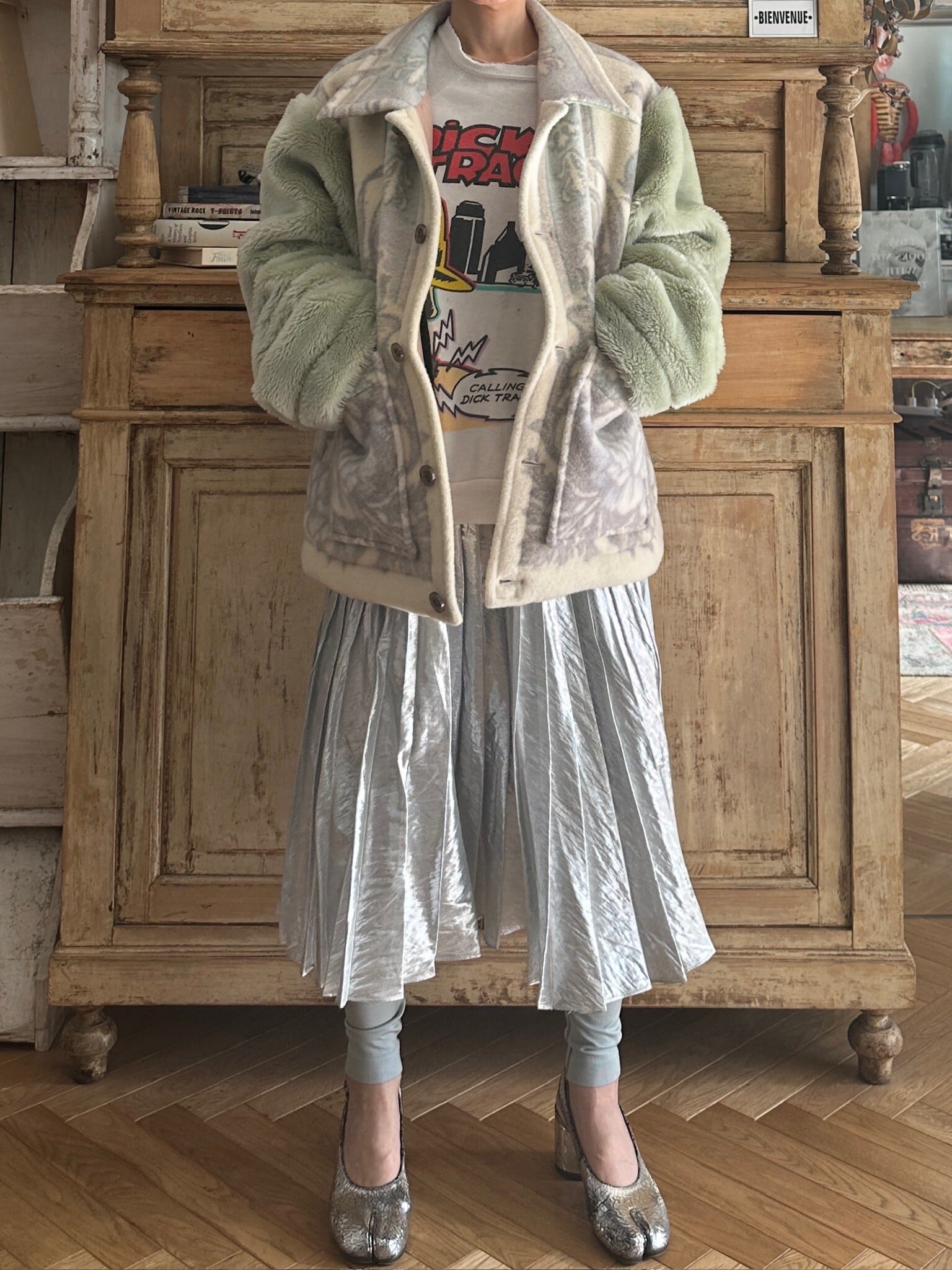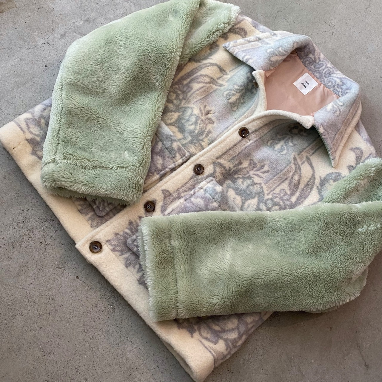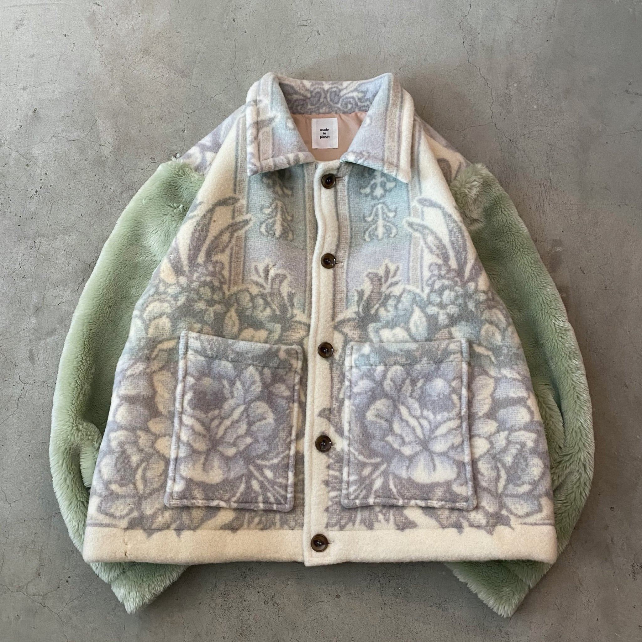 袖は毛足の長いヴィンテージ毛布になっています。
