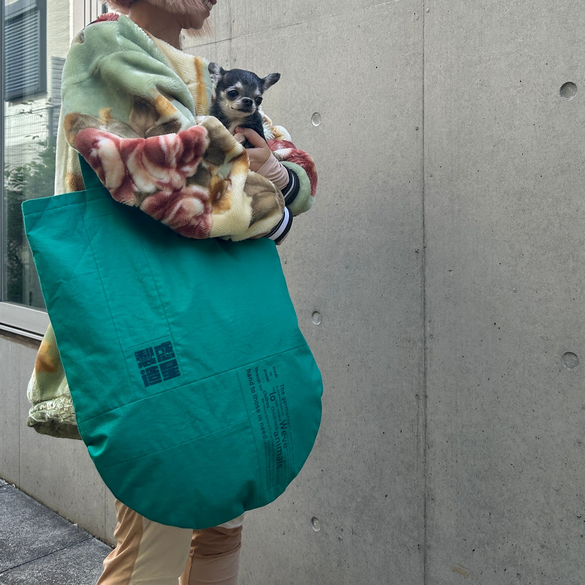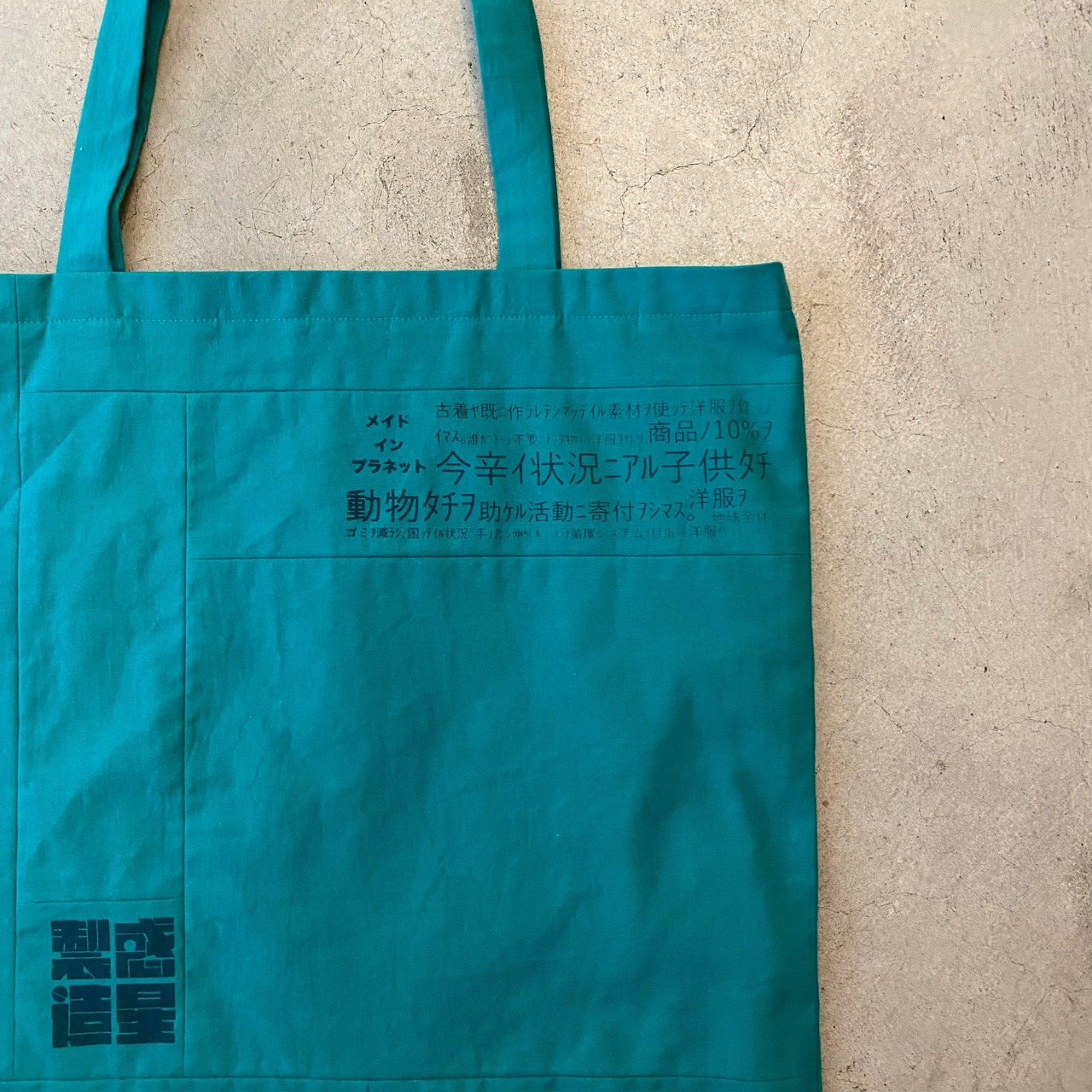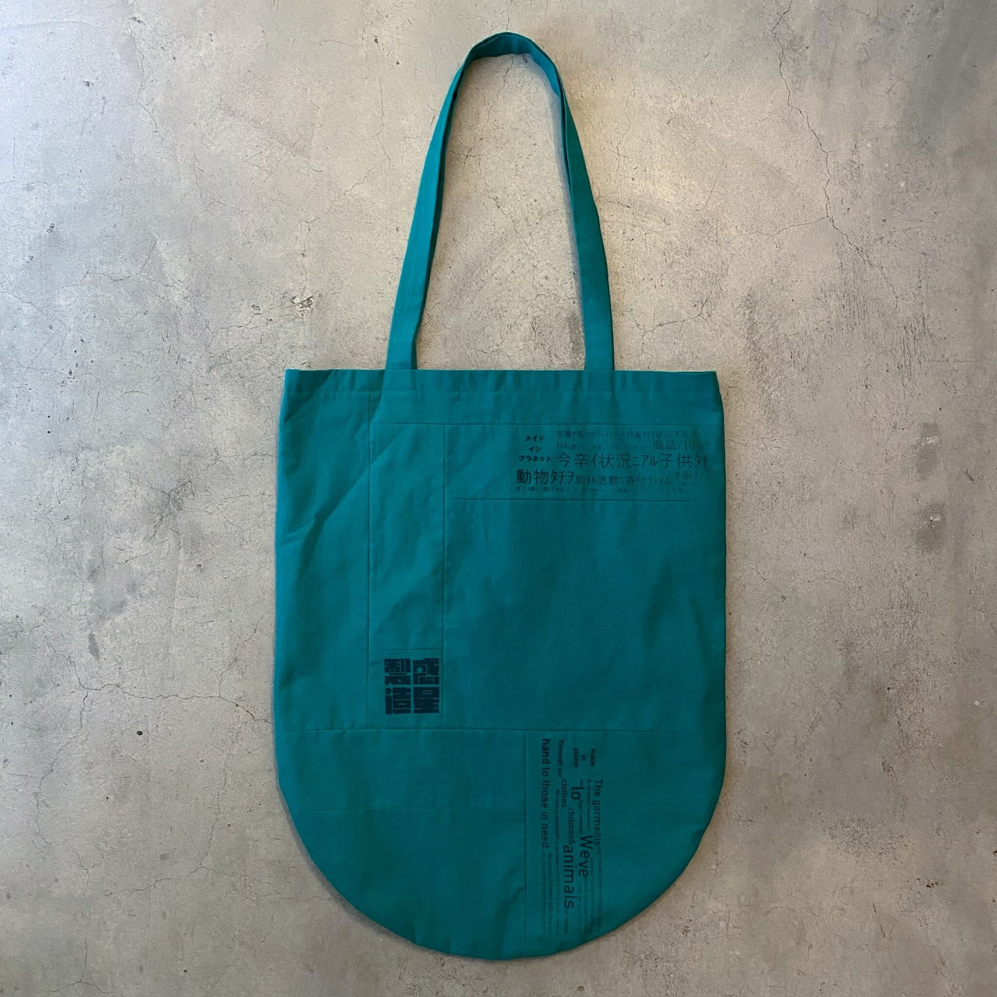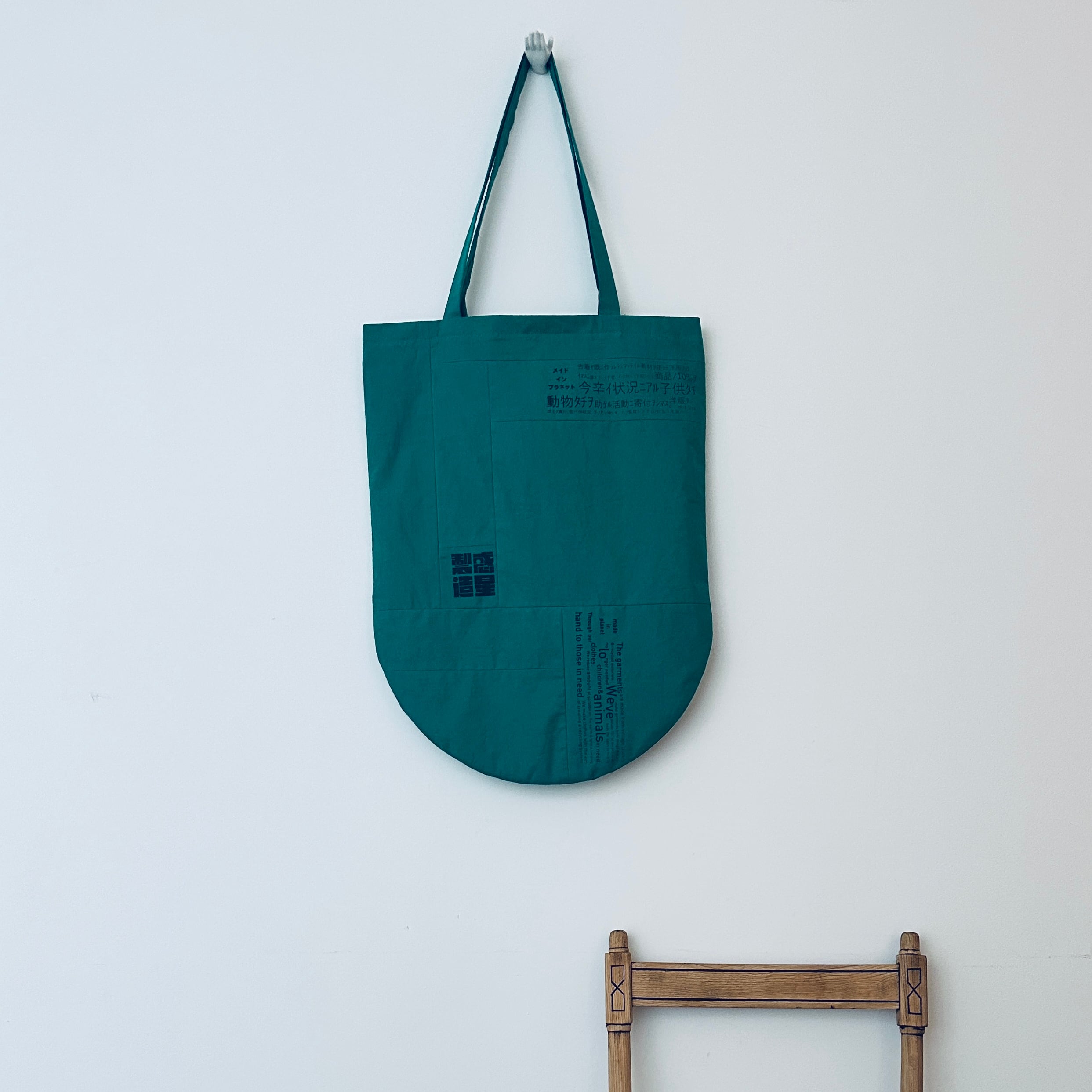 私たちの思いがハンドプリントされている、パッチワークのトートバッグになります。