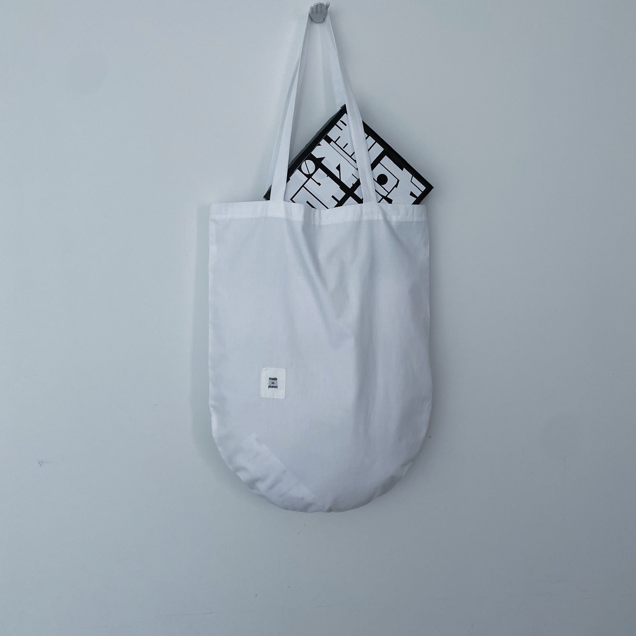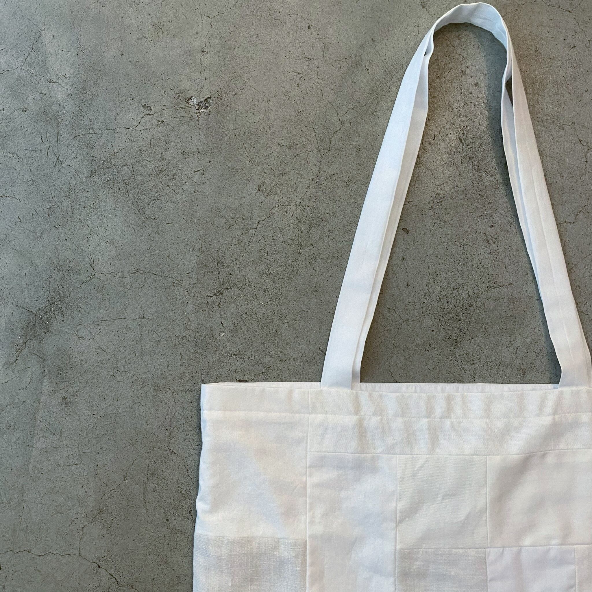 白バージョンは通常の"I think that" tote bag のプリントはありません。